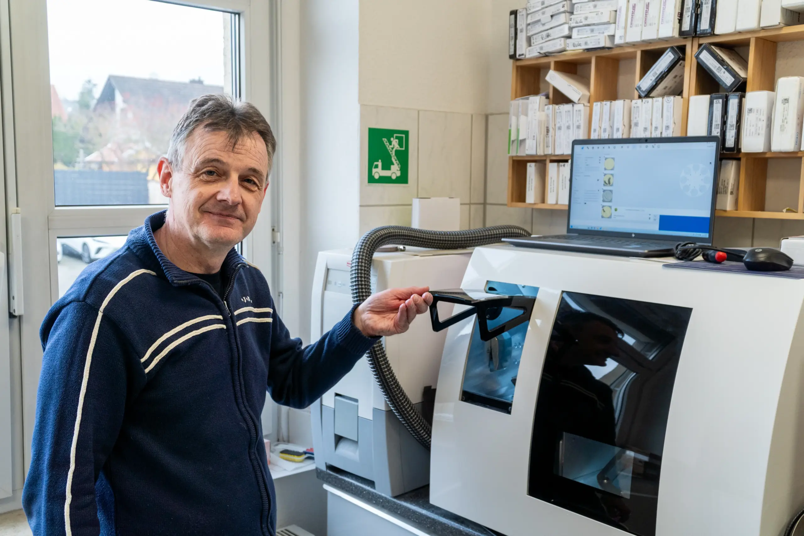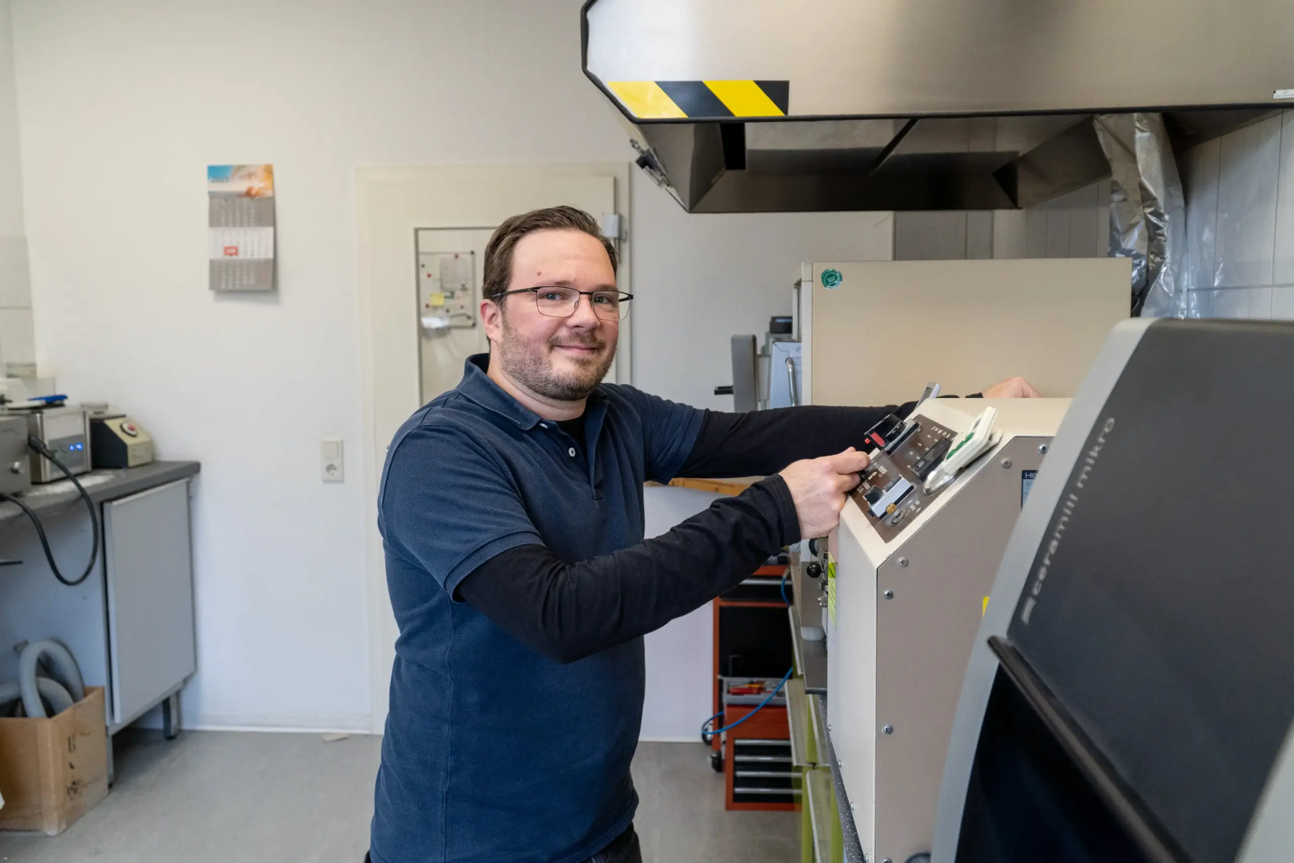 Nach Abitur und anschließender Ausbildung zum Zahntechniker, absolvierte er neben seinem Job als Laborleiter, bis 2002 die Meisterschule in Teilzeit. Seit 2005 ist der Zahntechnikermeister auch Geschäftsführer seiner eigenen GmbH in Alsfeld. Er selbst beschäftigt sich mit grundsätzlichen, ganzheitlichen Themen, wie der Funktionsdiagnostik. Sein Credo: nur eine gut durchdachte, geplante Arbeit führt zu einem überzeugenden Ergebnis für den Patienten. Bewährt hat sich seine Beratung bei der Wahl des optimalen Zahnersatzes gemeinsam mit Patient und Zahnarzt. Die Fortbildung seiner Mitarbeiter liegt ihm am Herzen, denn er möchte, dass sein Team stets auf dem neuesten Stand der Technik ist.
